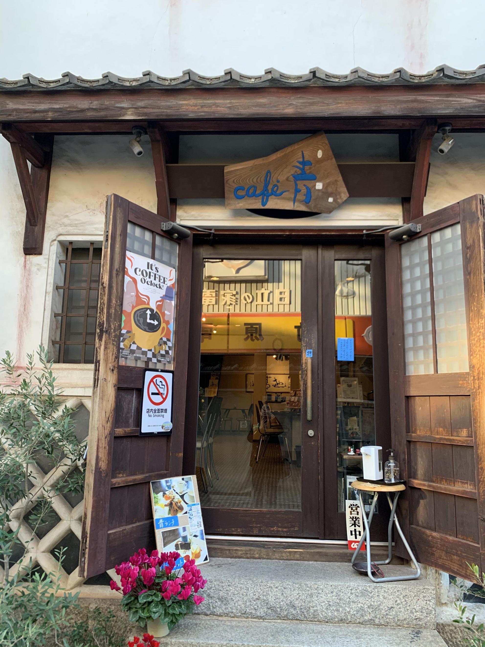 近くのカフェ青。落ち着いた雰囲気のカフェ