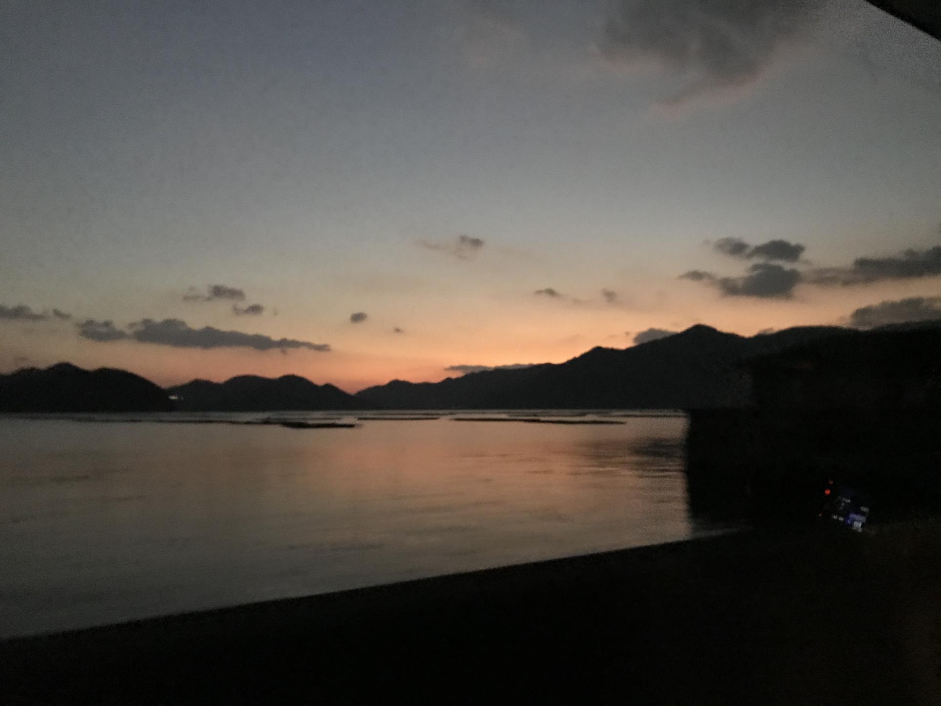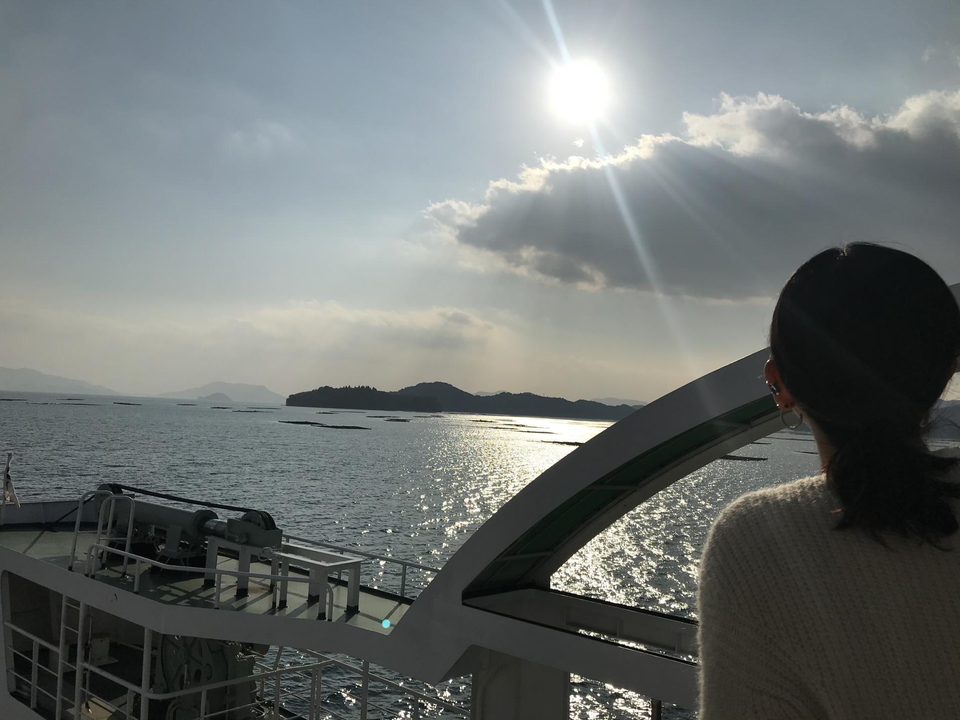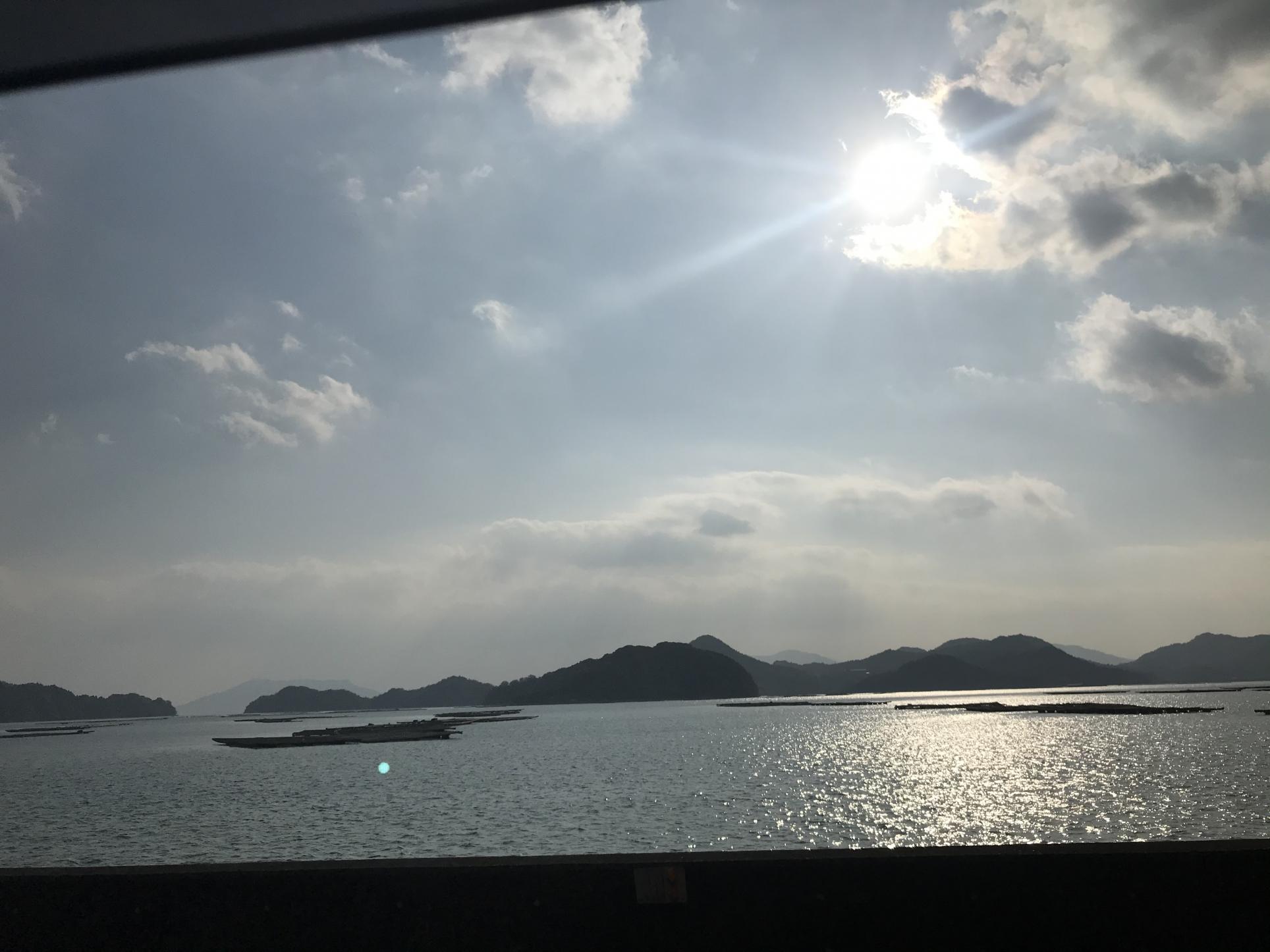 牡蠣筏(かきいかだ)の浮かんだキラキラ瀬戸内海、きれいー